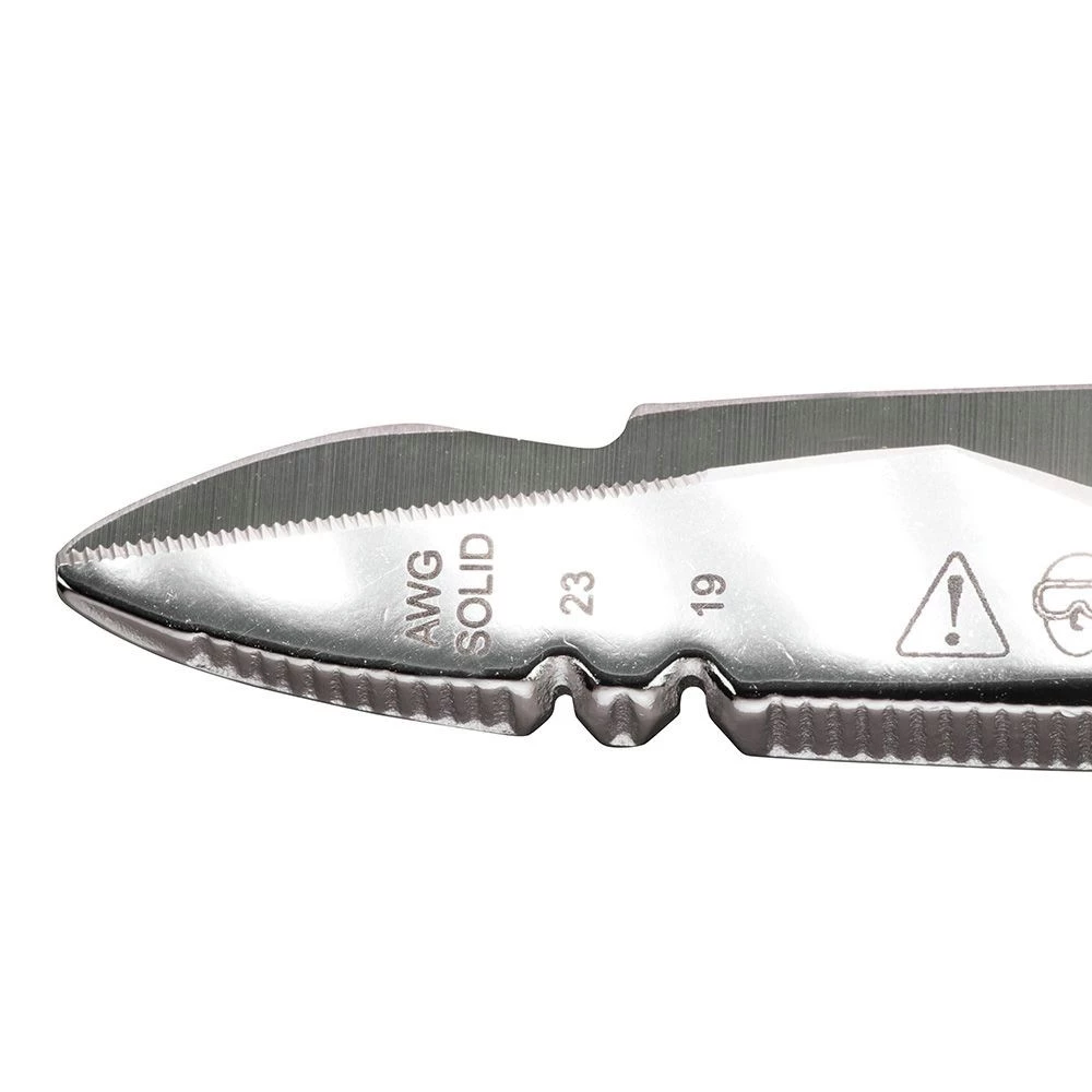 - Serrated teeth allow for non-slip cutting action Scraper on both blades for cleaning wire
