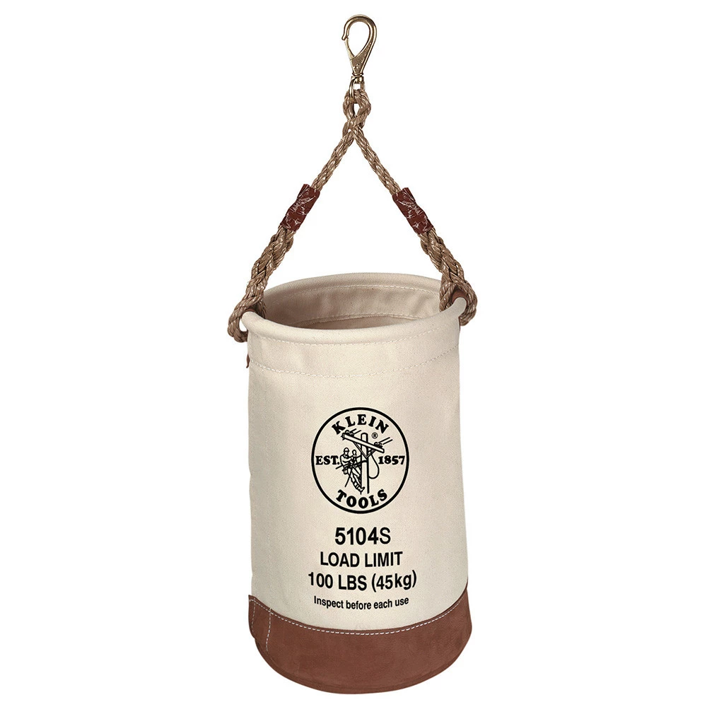 - 100 lbs. Capacity Canvas Bucket with Leather Bottom and Swivel Snap Hook – 5104S