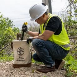 - Web handle extends down the sides of the tool bucket for added strength