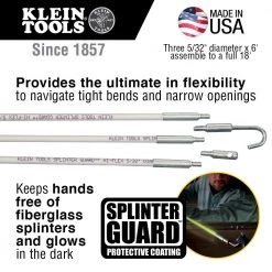 - (3) 5/32 in, (4 mm) diameter x 6 ft. (1.83 m) glow rods assemble to a full 18 ft. (5.49 m)Bullet nose and hook attachments to attach and grab wires