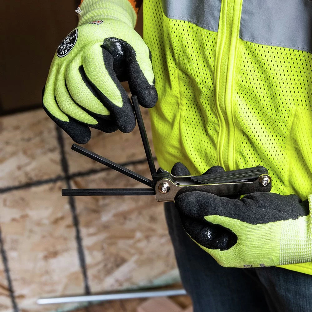 - Folding Hex Keys with two key positions (straight-out or right angle) for extra leverage